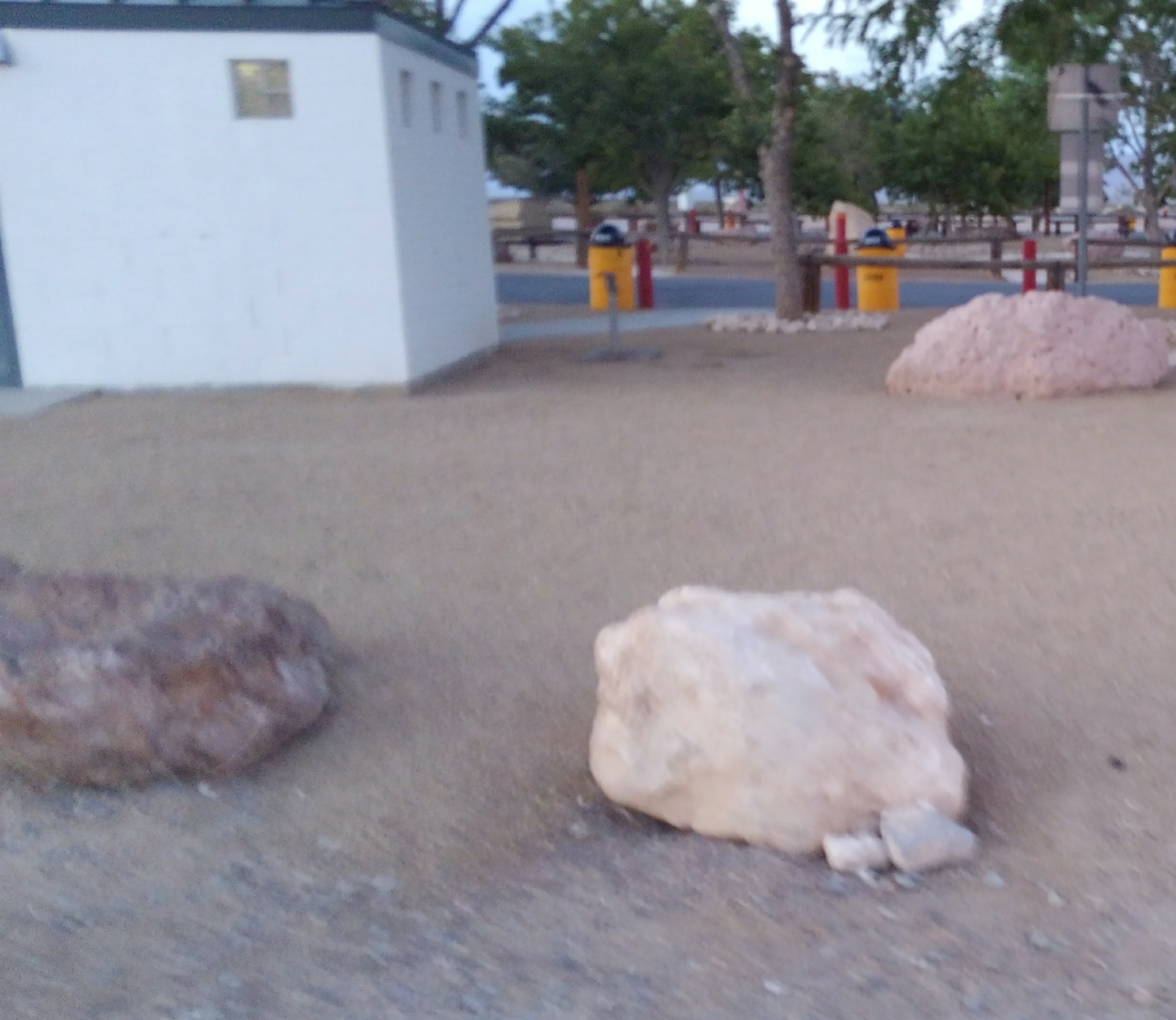 Go to Amargosa Valley, Nevada. Not many things to see. Visit the Area 51 Alien gas station, get a bite to eat across the street, then go right over to the rest stop and take a nap. When you wake, after you take care of your business, go behind the restrooms, where you will see some large rocks marking parking. Find the rocks that looks like the one in the picture. Move the small rocks to find there is peace out there! Re-cover well for the next encounter.